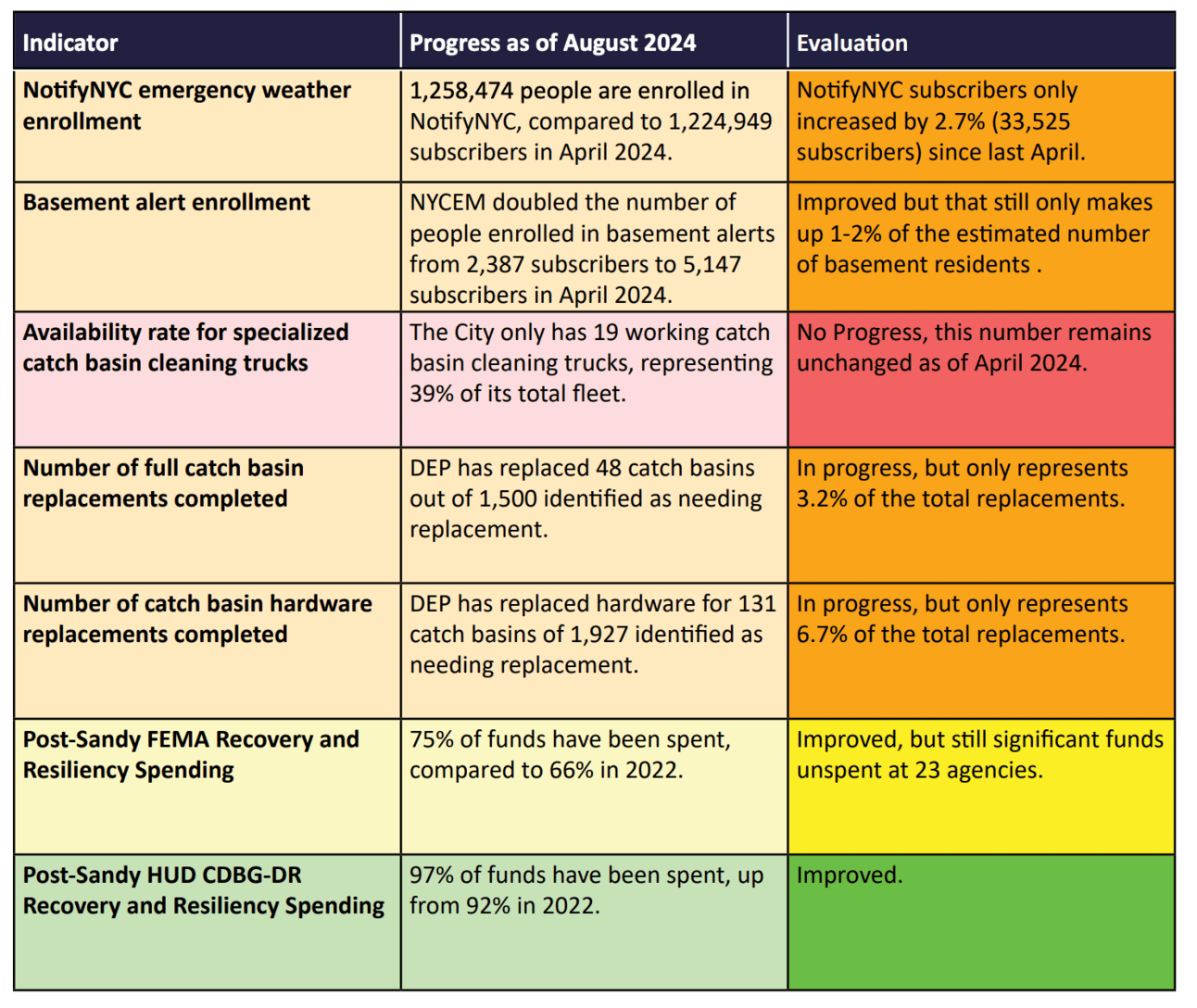 Some stats here from the NYC Comptroller’s Office Preparedness Report, such as number of people enrolled in Notify NYC alerts, catch basin maintenance and number of special trucks to clear out catch basins to improve sewer flow, funds spent on NYC resiliency:
