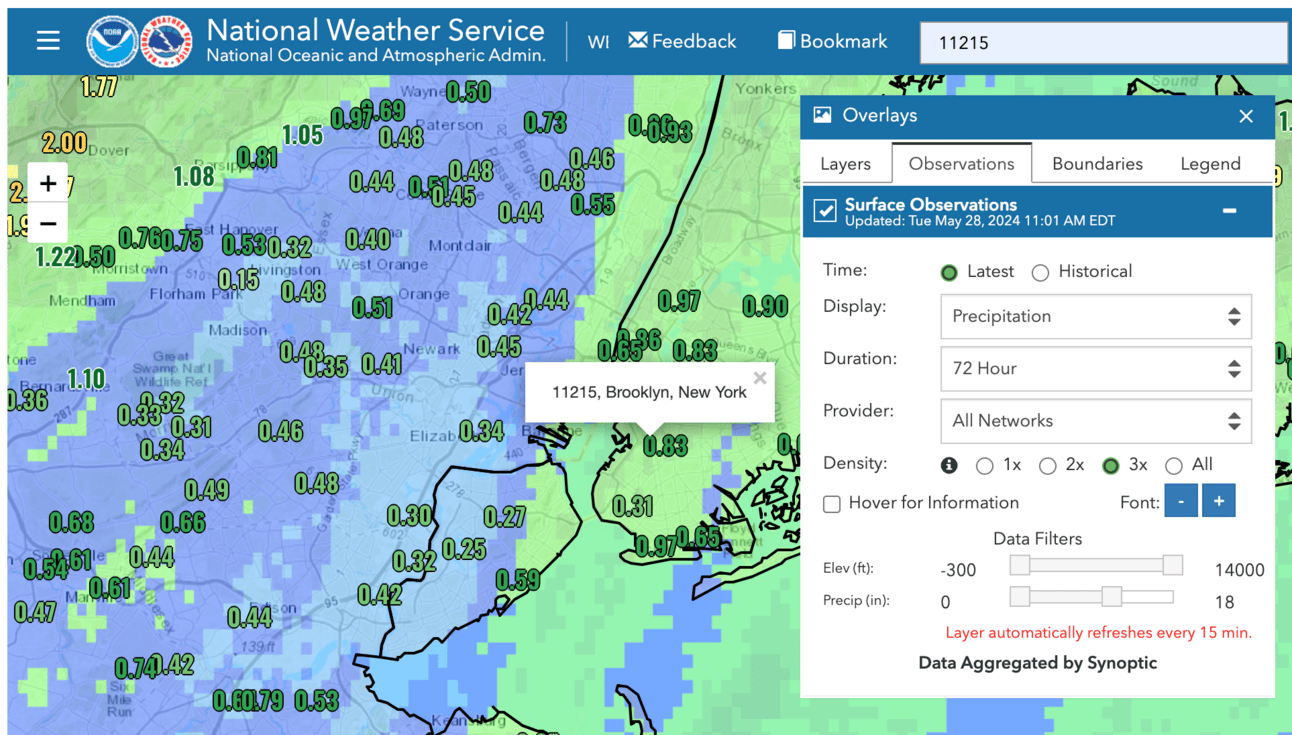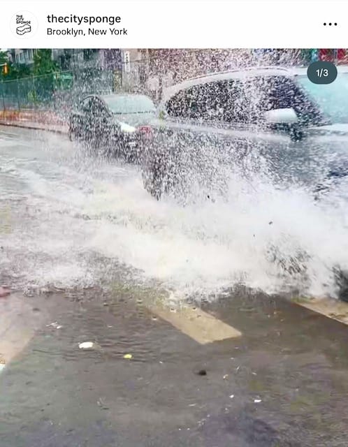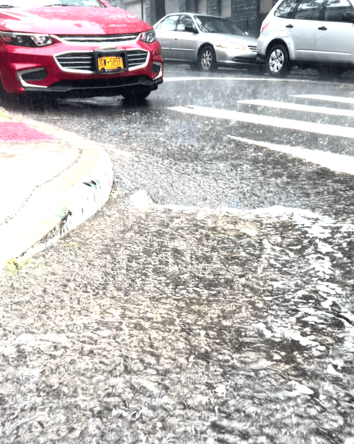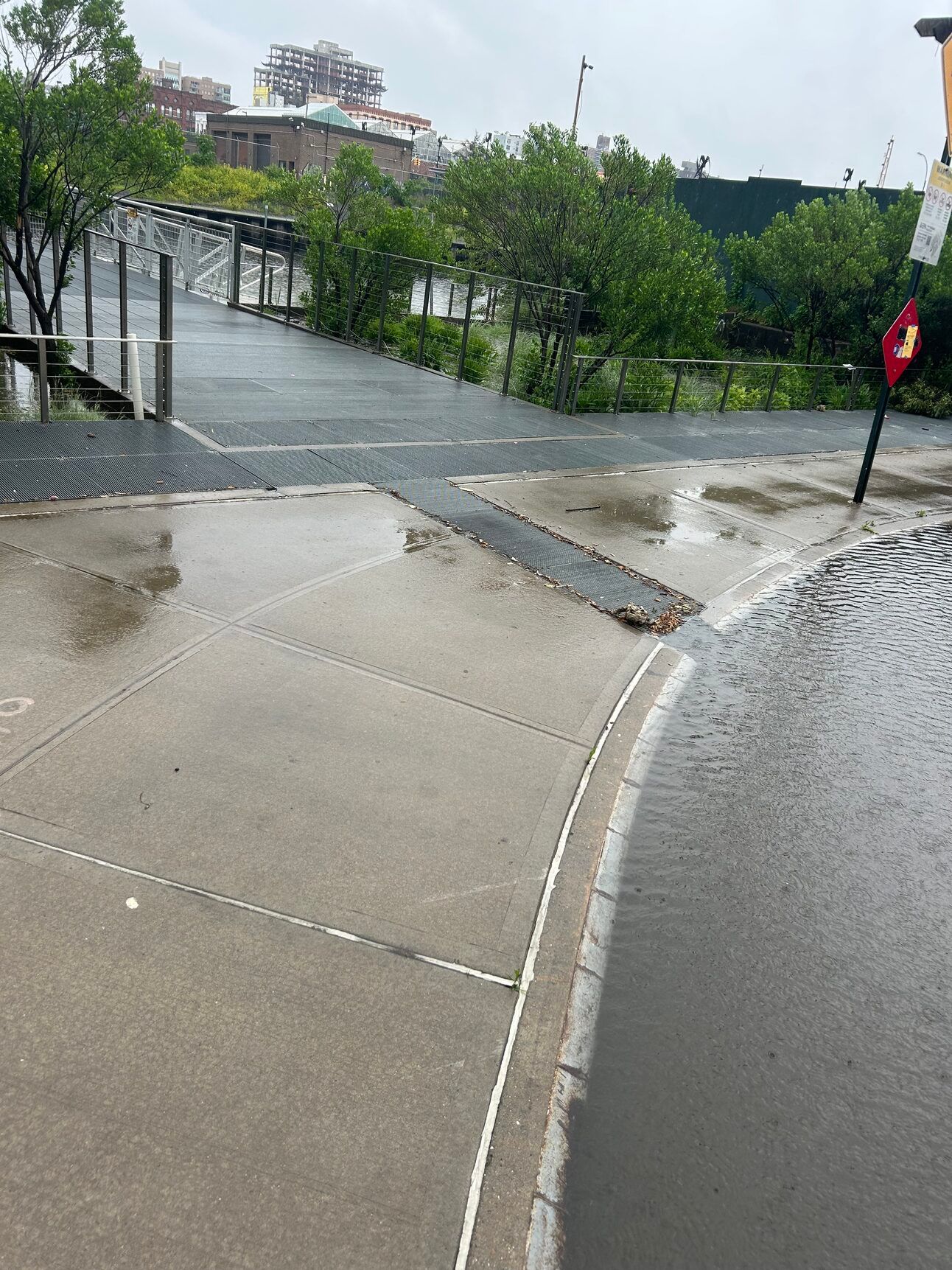 It’s sunny in Brooklyn right now, with some thunderstorms predicted for later. But just two days ago, on Memorial Day (May 2024), we had another “cloudburst” event. After being alerted that there would be a severe thunderstorm, I ventured out that day to see if there would be any local flooding impact in my area of South Brooklyn. Quite a bit (see below).