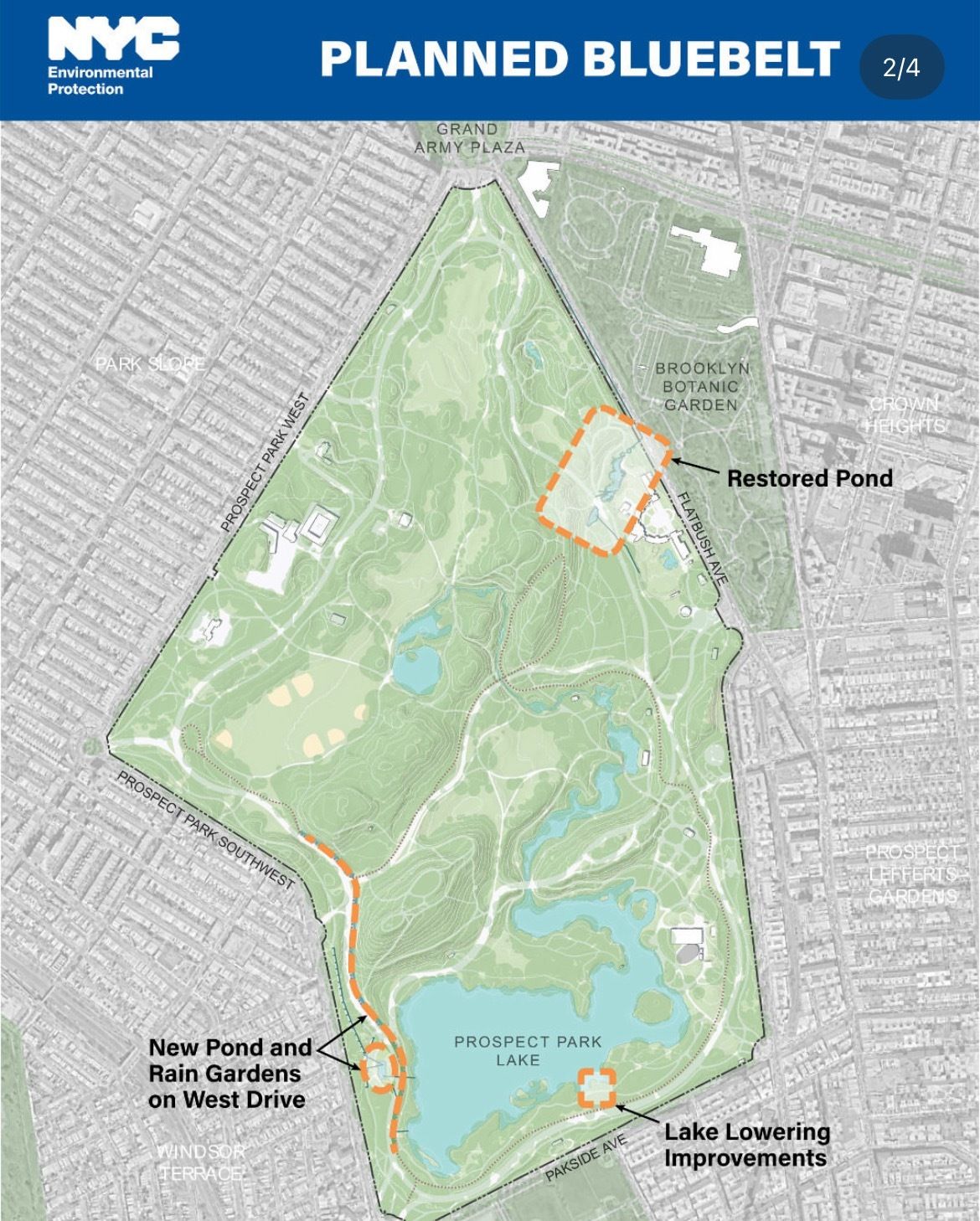 The Prospect Park Alliance is putting in $20M on top of the $50M from DEP and NYC Parks, totaling about $70M in approved funding.