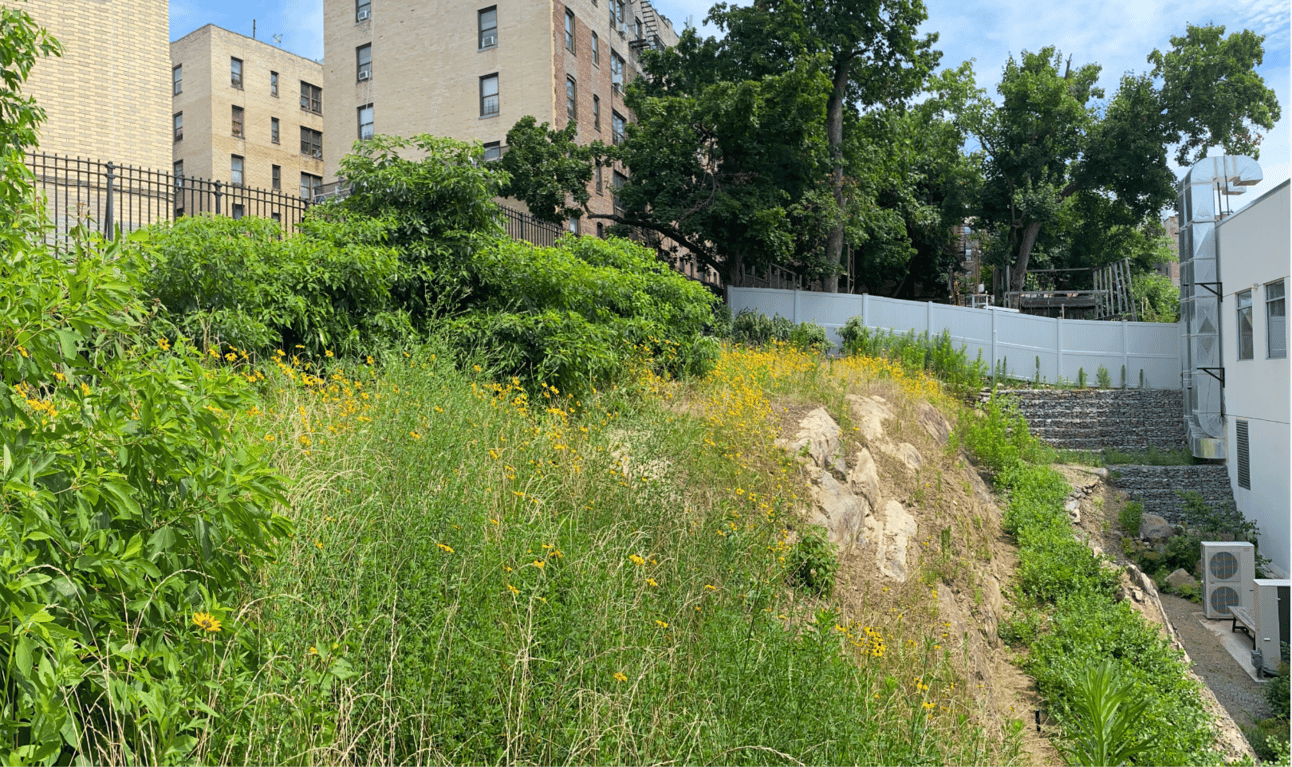 One of our first projects, a Bronx Health Care center, was to mitigate flooding in the building basement with new rain gardens that have been successful in soaking up water from heavy storms. The building staff loves the new gardens too - that's the co-benefit of green infrastructure!